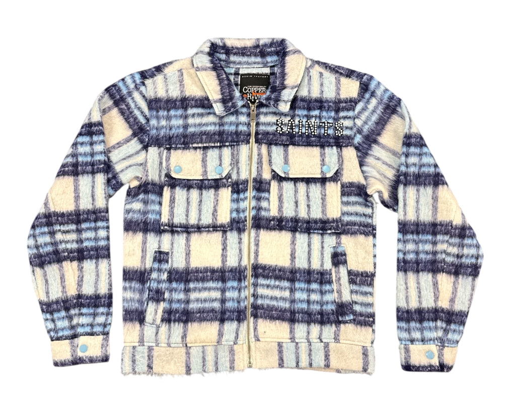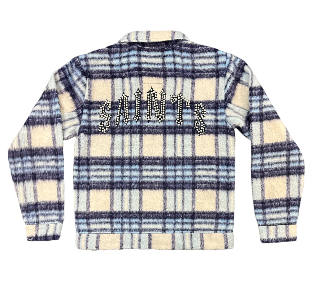 Copper Rivet Brushed Flannel Jacket With Pearl Embroidery