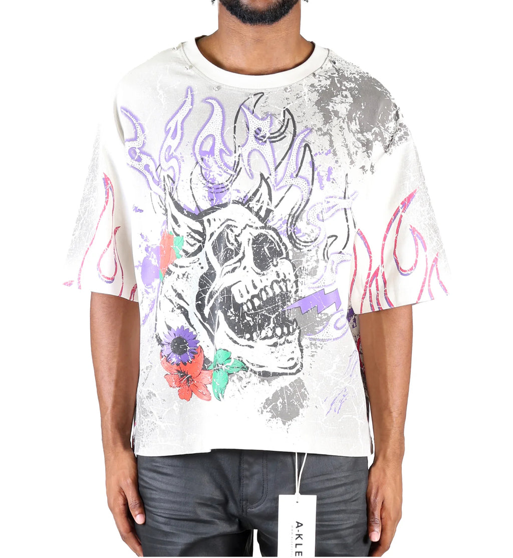Kleep ‘BERYL’ Short Sleeve Gothic Theme Cropped T-Shirt With Print & Stone Effects