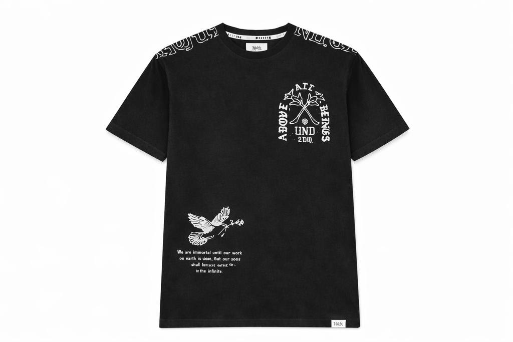 Highly Undrtd Above All T-Shirt delivers premium streetwear style in classic black. Cut for a comfortable normal fit, this essential tee features the iconic "Above All" graphic and pairs effortlessly with denim or shorts. Order your regular size for the perfect fit. Made for everyday wear with quality construction that lasts.