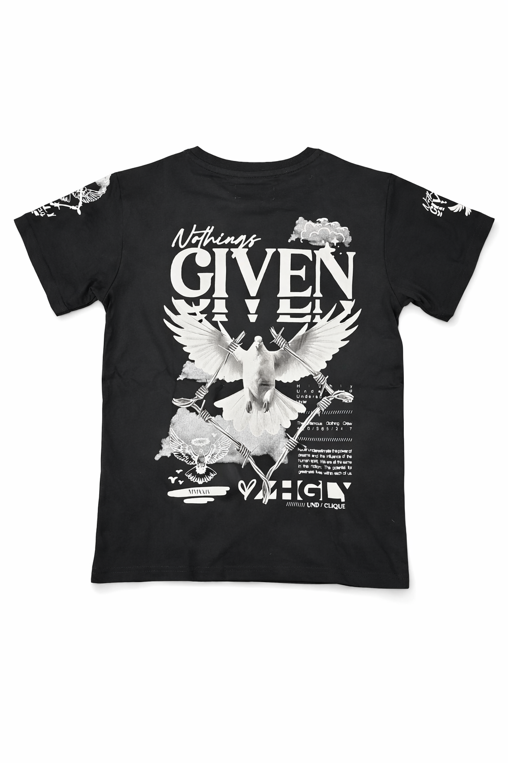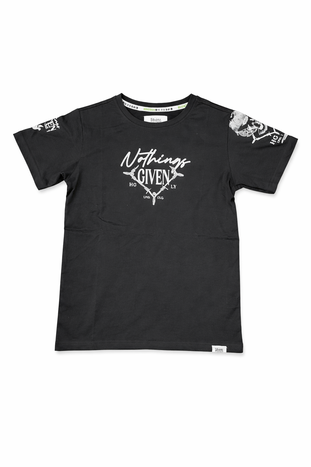 Highly Undrtd Kids Nothing Given T-Shirt in classic black delivers premium streetwear style for young trendsetters. Cut in a comfortable normal fit, this tee pairs effortlessly with any casual wardrobe. Style Number US6108K. Order your regular size for the perfect fit. Follow care instructions on the garment tag for lasting quality.