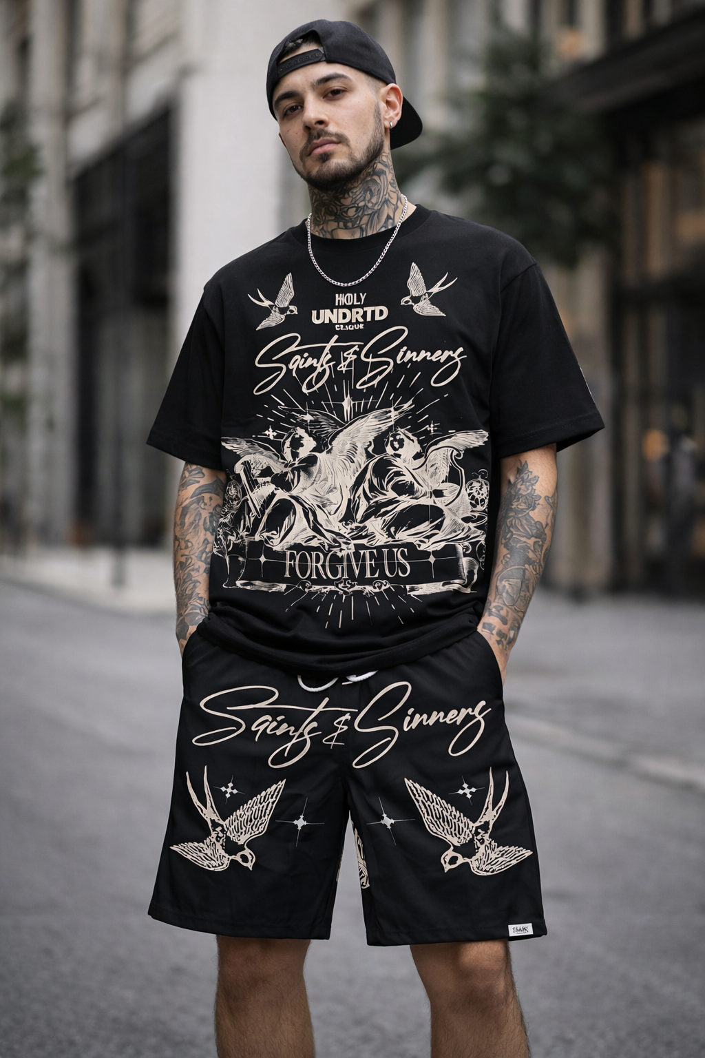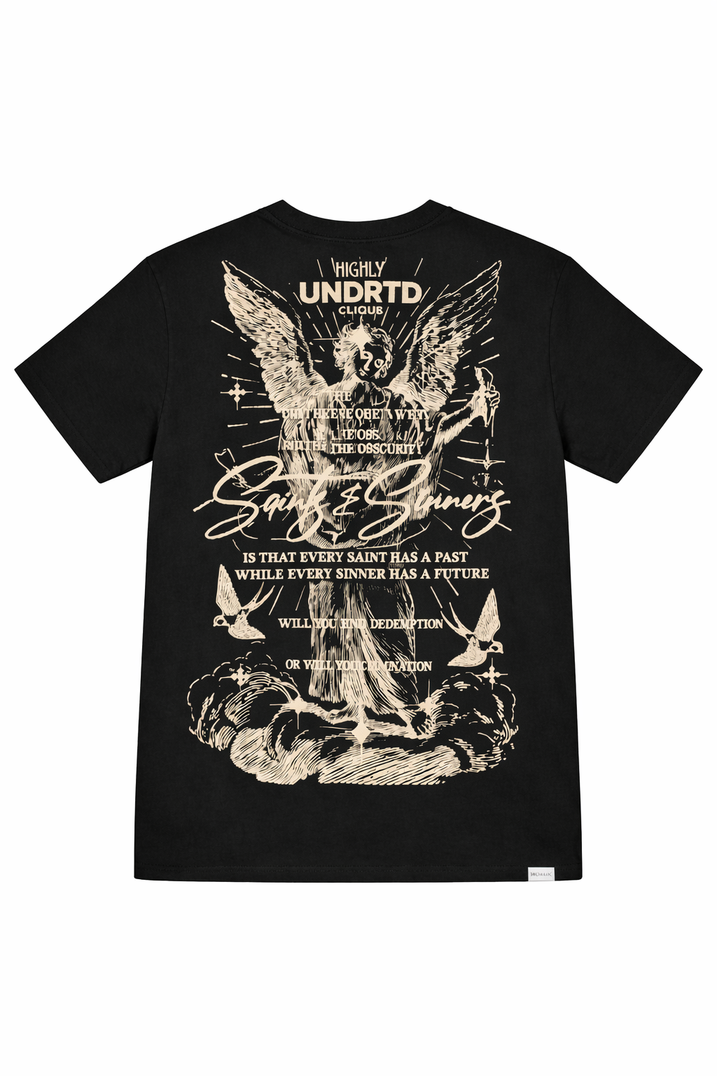 Highly Undrtd Saints & Sinner T-Shirt in Black – Premium streetwear tee with classic appeal. Style US6104 features a normal fit that runs true to size. Crafted for everyday wear, this black tee pairs effortlessly with denim or shorts. Follow care instructions on the garment for lasting quality.