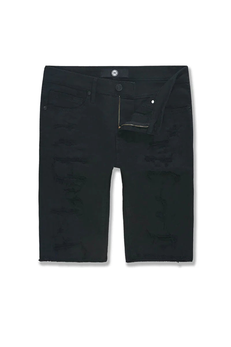 - Heavily shredded shorts with fused shreds