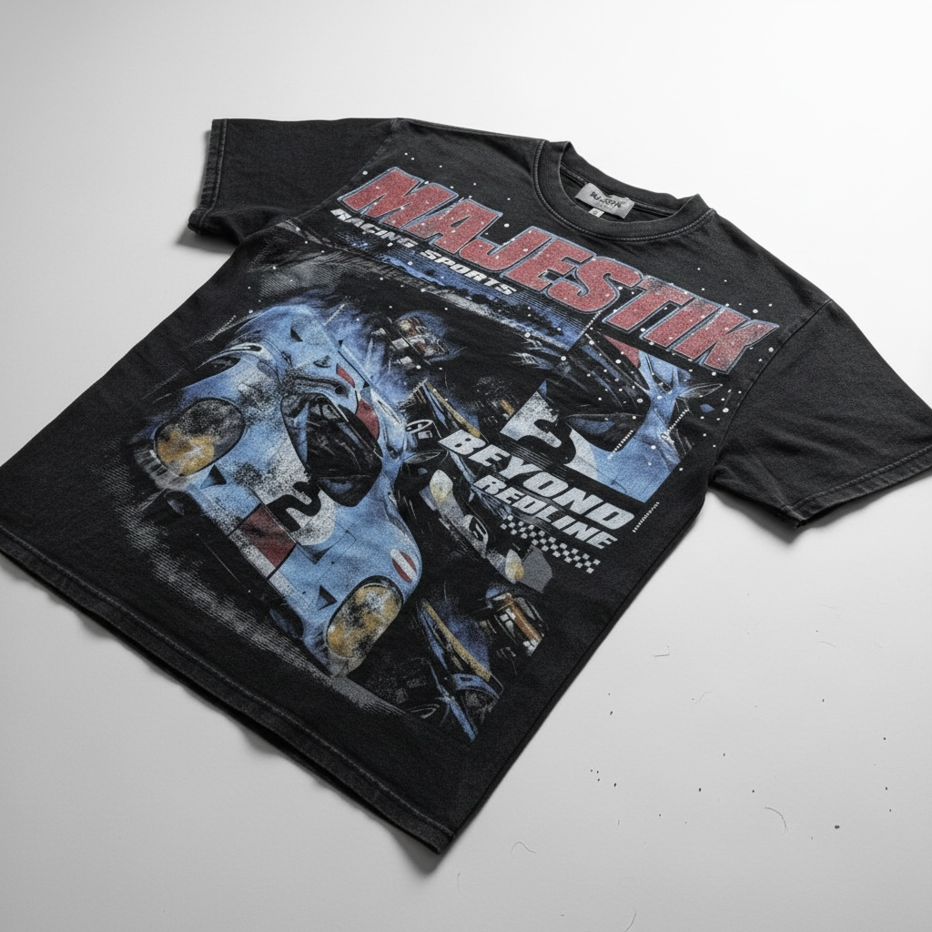 Majestik 'Beyond Racing' Garment Dyed T-Shirt (Black) TE2600
