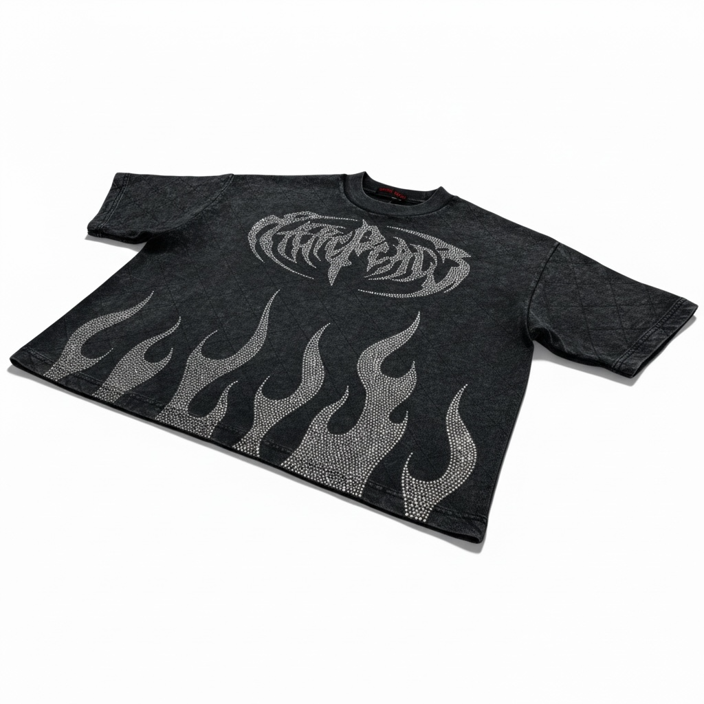 Featuring a relaxed oversized silhouette and modern cropped cut, this rhinestone cropped streetwear tee delivers comfort with strong visual impact. Perfect for stacked denim, cargos, sweats, and layered fits, the structured body and shimmering details make it a standout piece in any street fashion lineup.