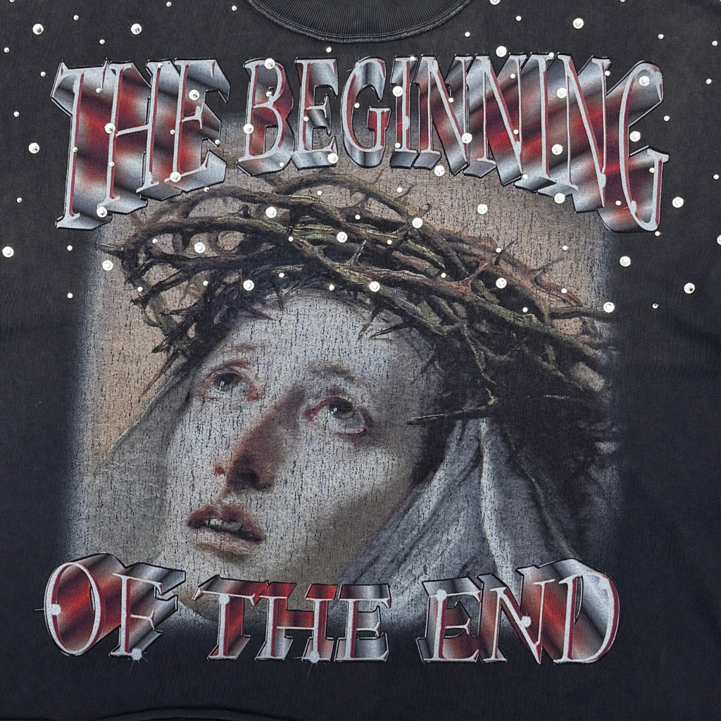 Rare Peace “The Beginning Of The End” Oversized Rhinestone Cropped T-Shirt (Dark Grey) – Style RT5060