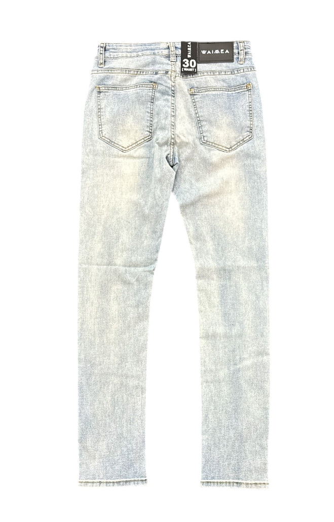 This pair of jeans is made up of 82% cotton 16% polyester and 2% spandex.